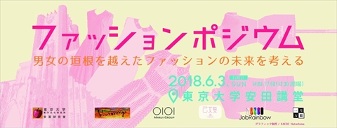 2018年6月3日14時から東京大学(東京都文京区)の大講堂(安田講堂)で開催されるファッションポジウムでは「男女で違うものを着なければならない」というファッション業界の“切り分け”を、ディスカッションやblurorange主導のファッションショーなどで問い直す。16時からの「みんなのファッションショー」では、来場者もショーに参加可能。安田講堂の舞台でプロのカメラマンに撮影してもらうことができる。入場無料(子どもも歓迎)、入退場は自由