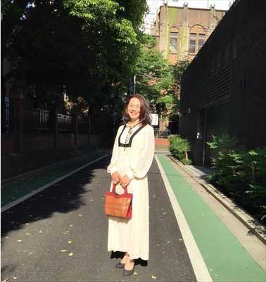 Blurorangeのワンピースを着る松村さん