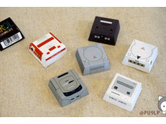 ファミコン、スーパーファミコン、NINTENDO64、セガサターン、ドリームキャスト、プレイステーションをかたどったシールを作り、チロルチョコにかぶせた手製の品。元のゲーム機とチロルチョコでは形がだいぶ違うのに、不思議となじんでいます。