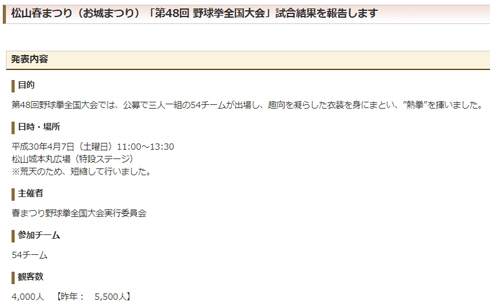 愛媛県松山市公式サイトには、野球拳全国大会の結果報告が掲載