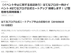 7月1日に開催予定だった「はてなブログ公式ミートアップ」の中止が発表されました。週刊はてなブログで告知されたもの。