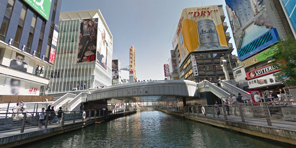 大阪・道頓堀のランドマークでもある戎橋(Googleストリートビューより)