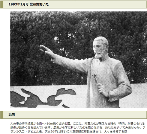 大分県大分市の「フランシスコ・ザビエル像」。短髪ですが、頭頂部も生えています(大分県Webサイトより)