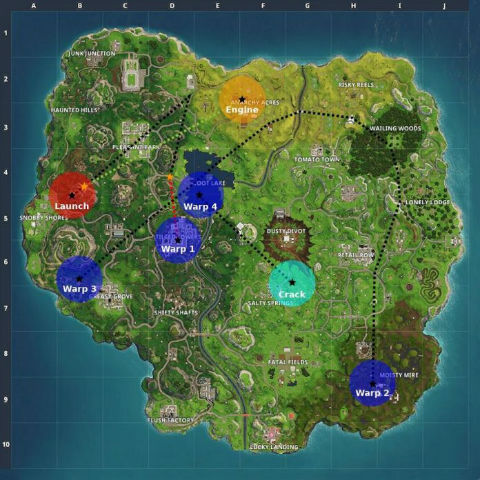 真面目な推測としては、ゲームデータの解析をもとにしたタイムトラベル説が浮かび上がっている(Fortnite Insider)。またロケット発射イベント直後にはロンリー・ロッジに謎のゆがみが生じ、イベント翌日には建物入口の看板が消失。同時にアナーキー・エーカー西のモーテルにも同様のゆがみが確認されるようになった(Fortnite Intel)。今後はシーズン5開幕に向けて少しずつ亀裂の影響が拡大し、シーズン5のテーマやマップ変更内容が明らかになっていくのではないだろうか。