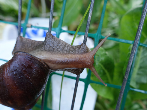 ですが、アフリカマイマイは殻長が約5〜10センチあり、中には20センチを超える個体も。殻を背負った姿はいかにもカタツムリらしいのですが、写真を見るとあまりにも大き過ぎて、合成画像のような印象すら受けます。