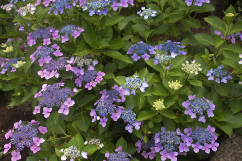 アジサイの原種とされるガクアジサイ。中央の通常花を、いくつかの装飾花が囲んでいます
