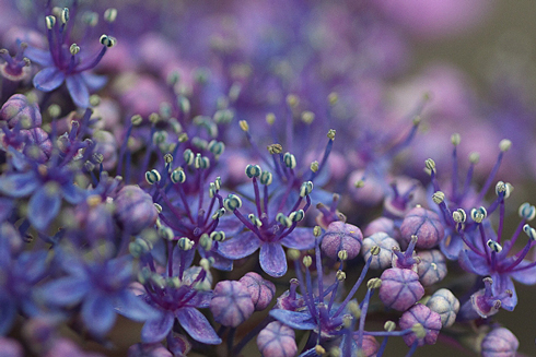 一般にアジサイの花といわれている部分は、花びら状に成長した萼(がく)が集まった「装飾花」。花といえば花なのですが、雌しべ、雄しべなどが極端に退化しており、生殖器官としての役割を失っていることから、こう呼ばれています。