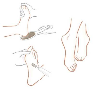 1. 入浴時に湯船に足をつけて(あるいは足浴して)、角質をあたためてやわらかくします。