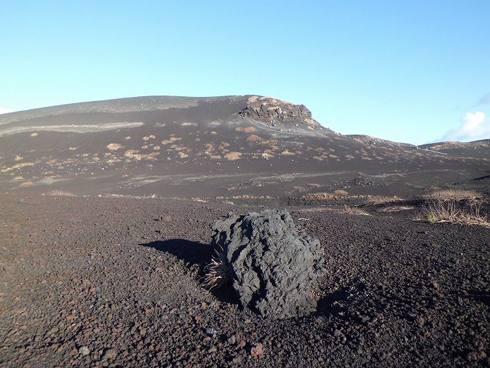 このような景観が生まれた原因は、三原山の火山活動。伊豆大島の風向きは安定しており、北東、西南西の風が多いのですが、その風下にあたる地域では、種子が定着しにくかったり、有毒なガスを含む噴煙が流れてきたりするため、植物が育ちにくいのだといいます。
