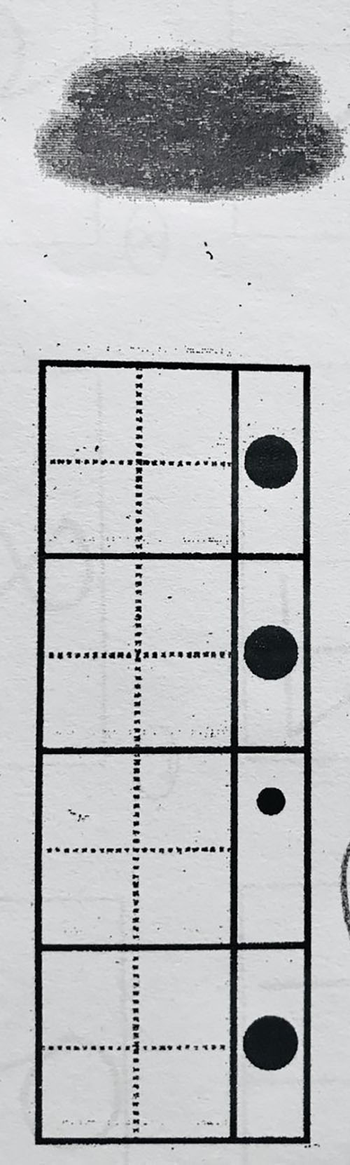 謎の黒い塊については、問題をコピーする過程ではらっぱのイラストが真っ黒につぶれてしまったことが原因で爆誕したとみられますが、このコピー濃淡問題については第3問にもしっかり影響。真っ黒の鉄板のようなものとマレット(ばち)が描かれた珍問となっています。なおこちらの答えは「もっきん」だったそうですが、「てっきん」と何が違うのかさっぱり分からない仕上がりで、新たな波紋を呼んでいます。