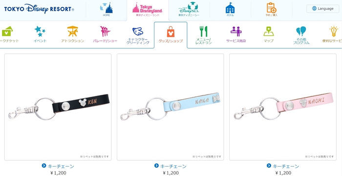 革製のキーホルダーのイメージ。当時とはデザインが変わっているようですが、オリジナルの名前を入れられるタイプとのこと(東京ディズニーリゾート公式サイトより)