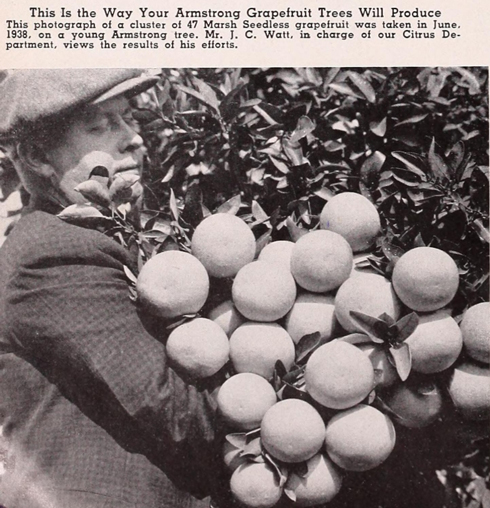 1942年に米国で刊行された本に掲載された写真。「47個の果実からなるグレープフルーツの房」とのこと(Internet Archiveより)