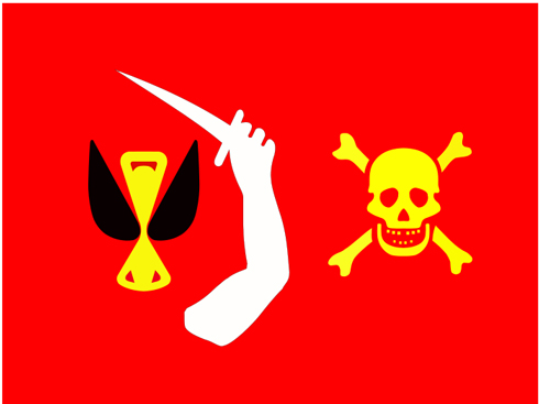 Edward Englandの旗のデザイン。ジョリー・ロジャーといえば、このイメージ(photo by WarX, edited by Manuel Strehl(CC BY-SA 3.0)