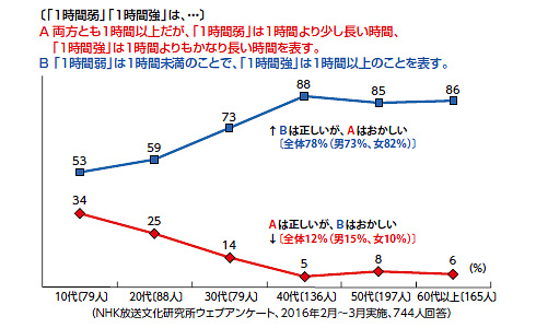 データ引用元「「1時間弱」は、1時間よりも長い?短い?」(NHK放送文化研究所)