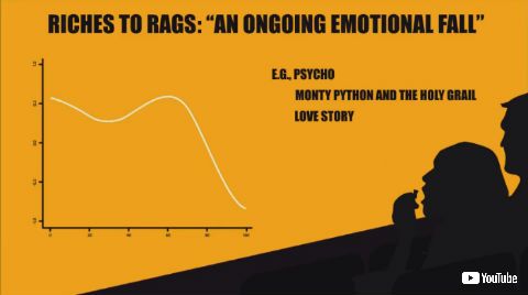 • 「Riches to Rags」(感情がポジティブ→ネガティブに下降):作品例「サイコ」「トイ・ストーリー3」「Love Story」