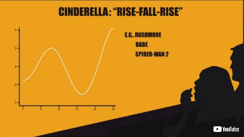 • 「Cinderella」(ネガティブ→ポジティブ→ネガティブ→ポジティブと上昇→下降→上昇):作品例「ベイブ」「スパイダーマン2」「Rushmore」