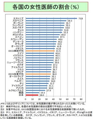 日本の女性医師の割合は世界各国と比べても非常に低い