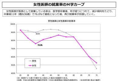 女性医師の就業率はM字カーブを描く