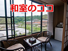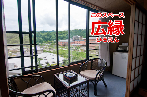 旅館などの窓際にある椅子、テーブルが置かれているスペース