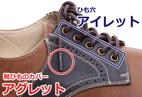 靴ひもの先端には、穴を通りにくくならないように、カバーが付けられています。この名称は「アグレット(Aglet)」といいます。