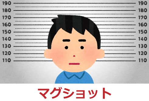 身長計をバックにしたり、番号が書かれたボードを持ったりして撮影される、容疑者の逮捕直後に撮影される顔写真は一般に「マグショット(mugshot)」と呼ばれています。