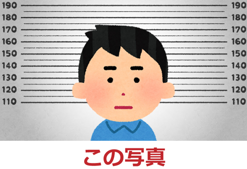 身長計などをバックに撮影される、逮捕された容疑者の顔写真(俗称)
