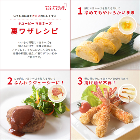 弊社にはマヨネーズ調理を研究している研究員がおり、今後も「裏ワザ」や健康に良い食べ方を紹介していく予定です。