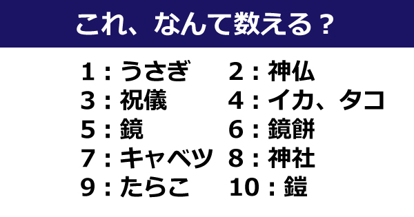「1本でもにんじん」なら「たらこ」「神社」は? 意外なモノの数え方クイズ