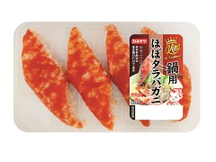 「ほぼタラバガニ」は、タラバガニを再現したカニ風味かまぼこ。近年タラバガニの価格は上昇傾向にあり、食卓に並ぶ機会が減る可能性があることから、「普段から手軽に楽しんでほしい」として開発されました。最もおいしい部分である脚肉部分のプリプリと弾力ある繊維、ほぐれる食感などが特長です。