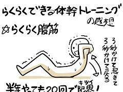 紹介されているのは「らくらく腹筋」「らくらく横向きのやつ」「らくらくお尻上げ」「らくらくバランス」の4つ。どれも“らくらく”と名前がつけられてはいますが、イラストのモデルは表情こそ明るいものの汗だくになっており、それなりにキツそう。