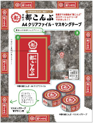 あのロングセラー商品「都こんぶ」(中野物産)が文具になりました。8月中旬にマスキングテープとA4クリアファイルが関西の土産店舗やバラエティショップなどで発売されています。
