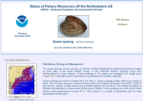 米国「国立海洋漁業局北東漁業科学センター」Webサイトより。ここでは漁業の対象として、アイスランドガイが紹介されています