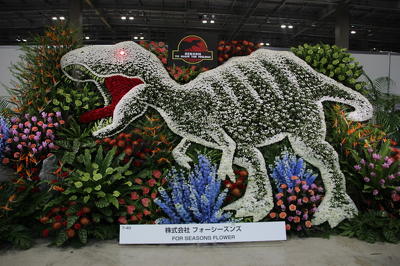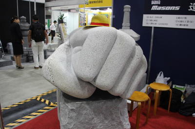 なお、エンディング産業展では葬式・墓・石・花・車など、さまざまなジャンルにわたる“人生の終わり”に関するビジネスの最前線を知ることができます。生花で作り上げた恐竜や、石職人が加工した巨大な拳(with麦わら帽子)など、「業界、こんな進化をしているのか……!」と驚くポイントがいっぱいです。