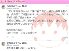 同じくかつてアニメのオープニングを歌った三倉茉奈さんは「さくらももこさんとはレコーディングでお会いしたんですが、とても優しくてすてきな方でした。まるちゃんも大好き。ご冥福をお祈り致します」とコメントしています。