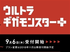 9月6日から受け付けを開始し、利用料金は通常5480円、各種割引により3480円から利用可能。また、2019年4月7日までの期間限定で、「ウルトラギガモンスター+」加入者が全データ使い放題になる「ギガ使い放題キャンペーン」も開催します。