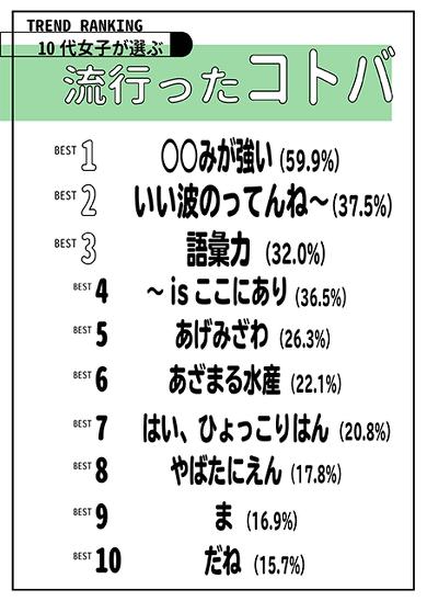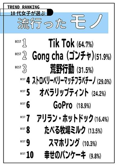 「10代女子に流行ったもの」ランキング、1位は? やばみが強い結果に注目
