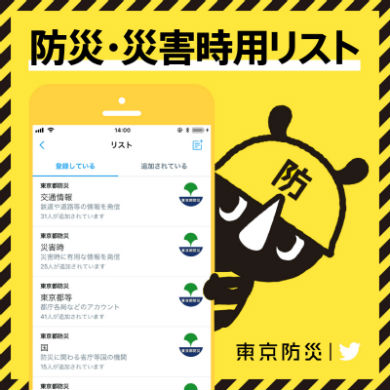 Twitterライフラインの47都道府県ごとにまとまったリスト、東京都防災(@tokyo_bousai)の防災・災害時用リストを保存しておくと、災害時に自分が住んでいる地区の災害情報や緊急情報を把握できます。またタイムラインと分けて必要なときにだけアクセスすることが可能。