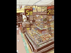 描かれているのはスーパーの一角。スイーツやパン、お米などが並ぶならんでおり、一見するとダックスフンドの姿はありません。しかし、よーく見ると2匹のダックスフンドが紛れ込んでいます。1匹目は簡単ですが、2匹目は拡大しないと厳しいかも?