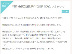 FC2は9月19日、コメント表示機能をめぐる特許訴訟でドワンゴに勝訴したと発表しました。