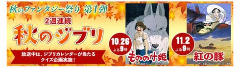 日本テレビの番組「金曜ロードSHOW!」が10月26日より、2週に渡ってスタジオジブリの作品を放送する「秋のジブリ」特集を実施します。作品は10月26日が「もののけ姫」、11月2日が「紅の豚」です。