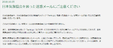 日本気象協会かたる迷惑メールに注意 「台風は最悪のコースへ」など気象情報装う