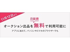 ヤフーは、オークションサービス「ヤフオク!」のオークション出品を、アプリ/ブラウザを問わず11月12日から月額費無料で利用できるよう変更すると発表しました。
