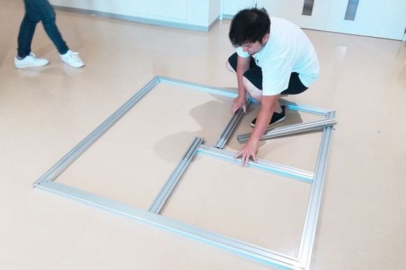 それを元にナットとボルトで自由自在に組み立て可能なアルミフレームを用いて土台を作ります。