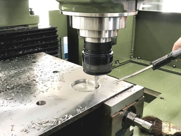 NCフライス盤を用いて、土台とサーフボードをつなぐアルミプレートに溝掘りと穴あけ加工。