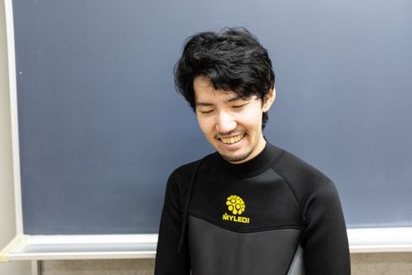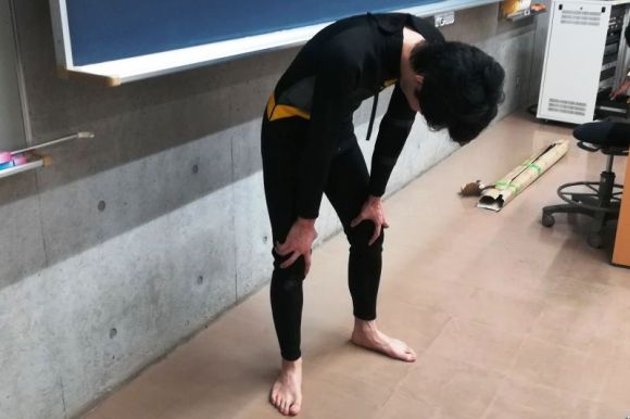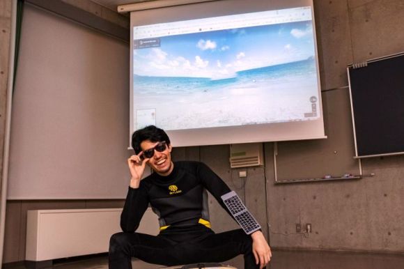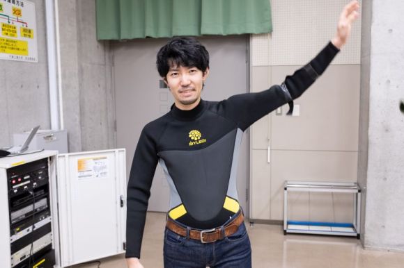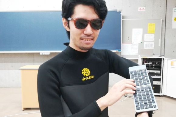 そしてウエットスーツに加えて、左腕に無線キーボードを装着すれば……。