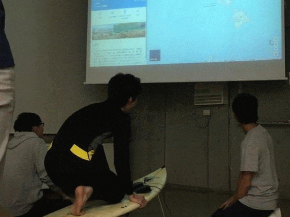 リアルネットサーフィンマシンを使って最初にやることといえば……もちろん、スクリーンにハワイのきれいなビーチを映して疑似サーフィン体験をすること!