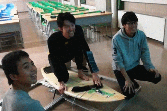 今回のプロジェクトを通してNCフライス盤を初めて使用し、工学部生として1つ成長できた気がします。完成した機体の動きは自分としては満足いくものではなく、ボードの傾き角を制御することが難しかったです。特に、サーフボードが右に左にヨーイング方向に回転してしまっていたので、そのあたりは見積もりが甘かったと思いました。ただ最低限の動作はしていたのでまた機会があればブラッシュアップしていきたいと思います。