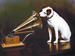 イギリスの画家フランシス・バラウドには「ニッパー(Nipper)」という犬を飼う兄がおり、その兄の死後、彼はニッパーを引き取ることに。あるとき、生前に録音していた兄の声を蓄音機から流すと、ニッパーはその音声に聞き入ったのだそうです。