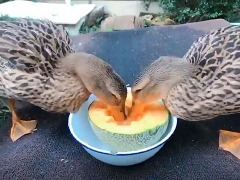 おいしそうにメロンを食べるアイガモさんの動画がTwitterで話題になっています