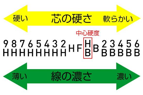 どうやらJIS規格に「中心硬度」という概念があり、それが「HB」を最も一般的な濃さ・硬さにしているらしいと考えられます。JIS規格も調べてみると、
